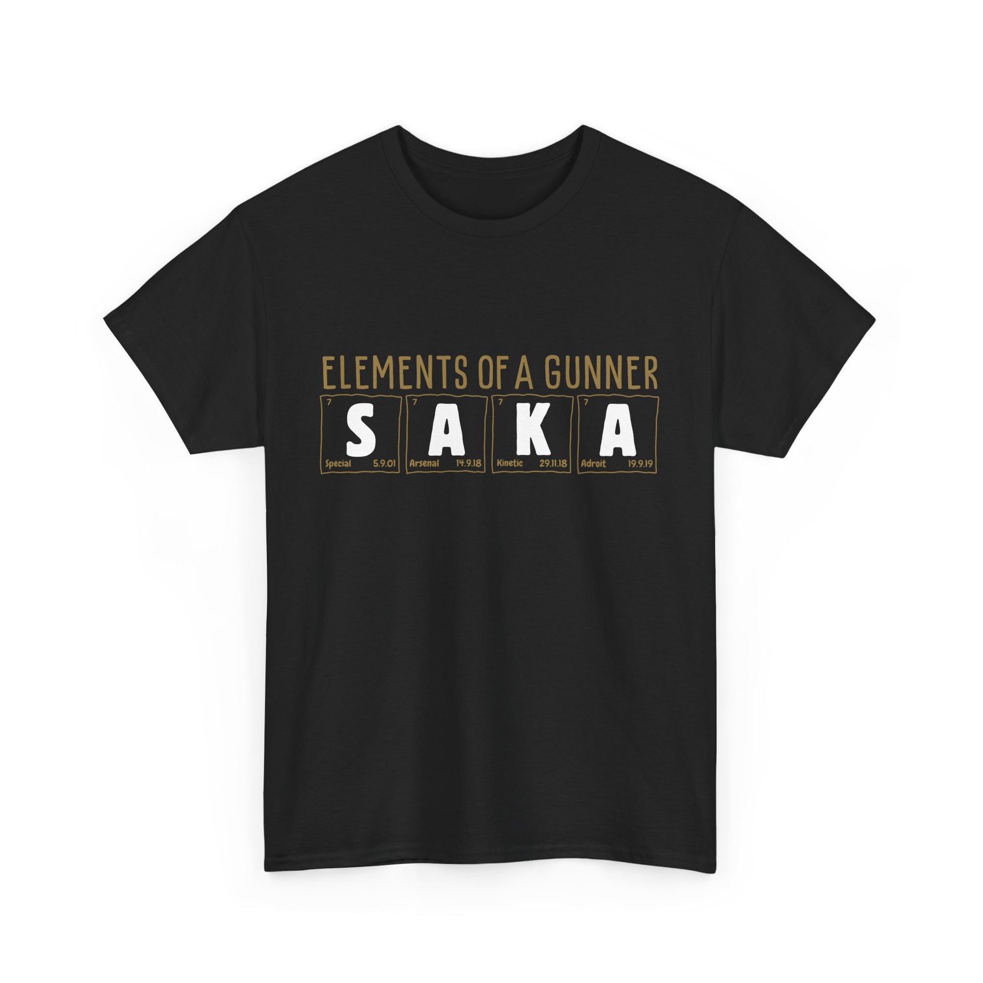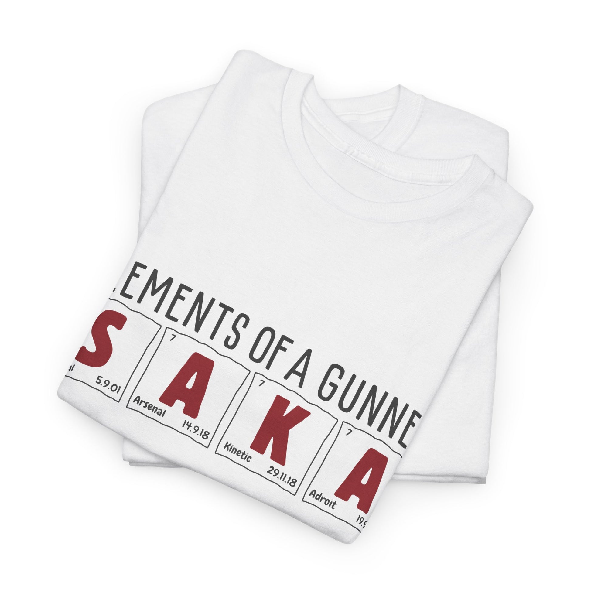 Exclusive Arsenal Saka Bukayo Fan t-shirt, featuring our unique © Elements of a Gunner - periodic table art! Crafted for true Gooners and Saka enthusiasts.